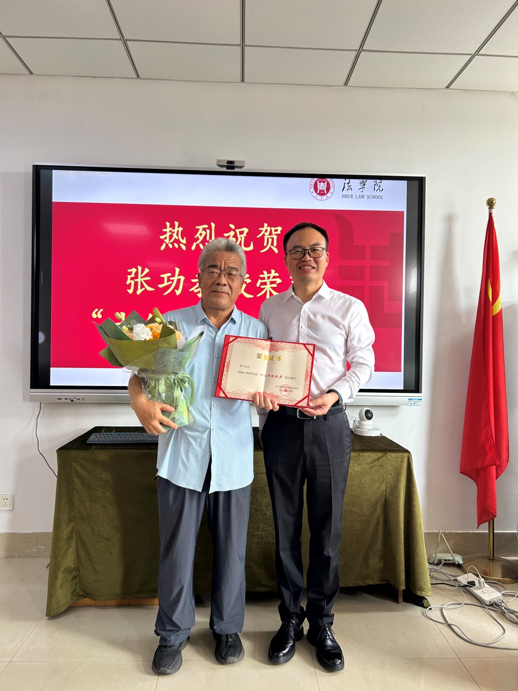 本网讯 2025年9月11日下午,在知行楼403会议室,校领导张忠民副校长慰问9001cc金沙以诚为本十佳师德标兵张功教授,9001cc金沙以诚为本领导班子和系部主任参加颁奖仪式。
