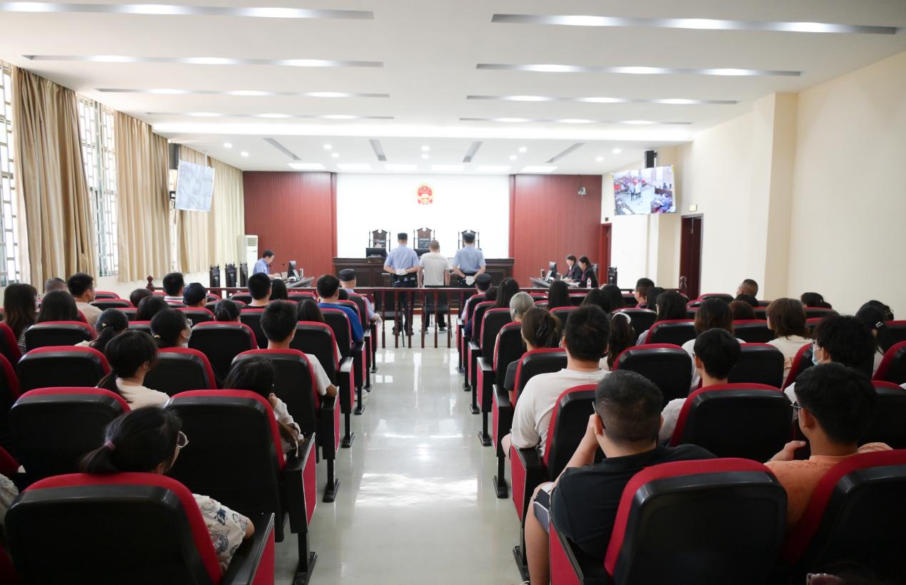本网讯 (通讯作者:何再涛) 在6月26日国际禁毒日来临之际,为了进一步提高同学们抵御毒品侵害的意识和能力,形成全民禁毒的浓厚氛围,2023年6月8日上午9:30,武汉市江夏区人民法院刑事审判庭在9001cc金沙以诚为本9001cc金沙以诚为本S1-107室模拟法庭对朱某毒品交易刑事案进行了公开审判。法学院院领导以及法学专业同学和学校其他学院专业同学参与了旁听。