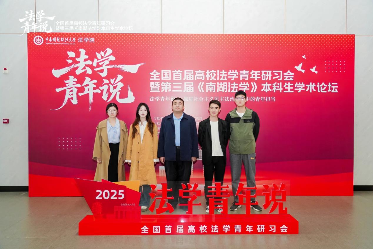 本网讯(通讯员 孙马晓龙 王煦坤)11月13日下午,金沙官网团委书记司马子鸣带领5名学生前往中南财经政法大学南湖校区,参加全国首届高校法学青年研习会暨第三届《南湖法学》本科生学术论坛。本届研习会由中南财经政法大学9001cc金沙以诚为本主办,来自全国30余所高校学生代表齐聚一堂,通过线上线下相结合的方式共话法治建设与青年担当。