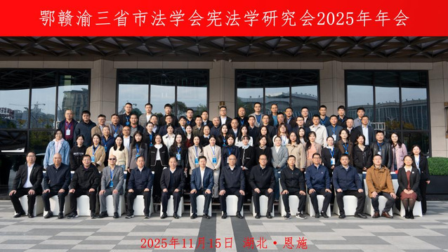本网讯 (通讯员 林亚楠 王秀才)2025年11月15日,鄂赣渝三省市法学会宪法学研究会2025年年会在湖北恩施举行。本次年会由湖北省、江西省、重庆市三地法学会宪法学研究会共同主办,湖北民族大学与恩施州人大常委会联合承办。湖北省法学会党组成员、秘书长赵俊出席会议并讲话。来自湖北省、江西省、重庆市的近百余名宪法学专家、学者、青年学生代表参加本次年会。