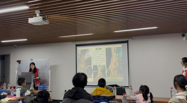 “故事启思”板块,志愿者以原创绘本《长臂猿卡卡》为媒介,借长臂猿的雨林探险故事,系统介绍热带雨林物种互依关系,阐释“依存与守护”的生态伦理,引导儿童建立生命共同体意识。