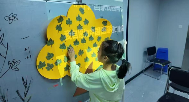 “承诺内化”板块,全体学生在便签上书写个人环保承诺,并粘贴于象征雨林群落的“生态绿巨人”树状展板,形成集体绿色宣言,强化“知—信—行”闭环。