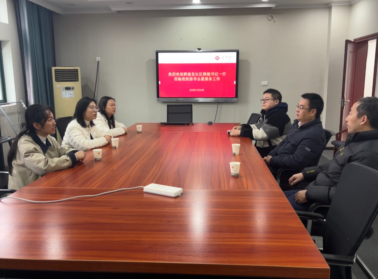 本网讯(通讯员:司马子鸣)12月24日东湖新技术开发区群建里社区党委书记薛娅一行来金沙官网座谈交流,并向金沙官网赠送锦旗。院党委书记杨专、副院长潘德勇、团委书记司马子鸣参加。