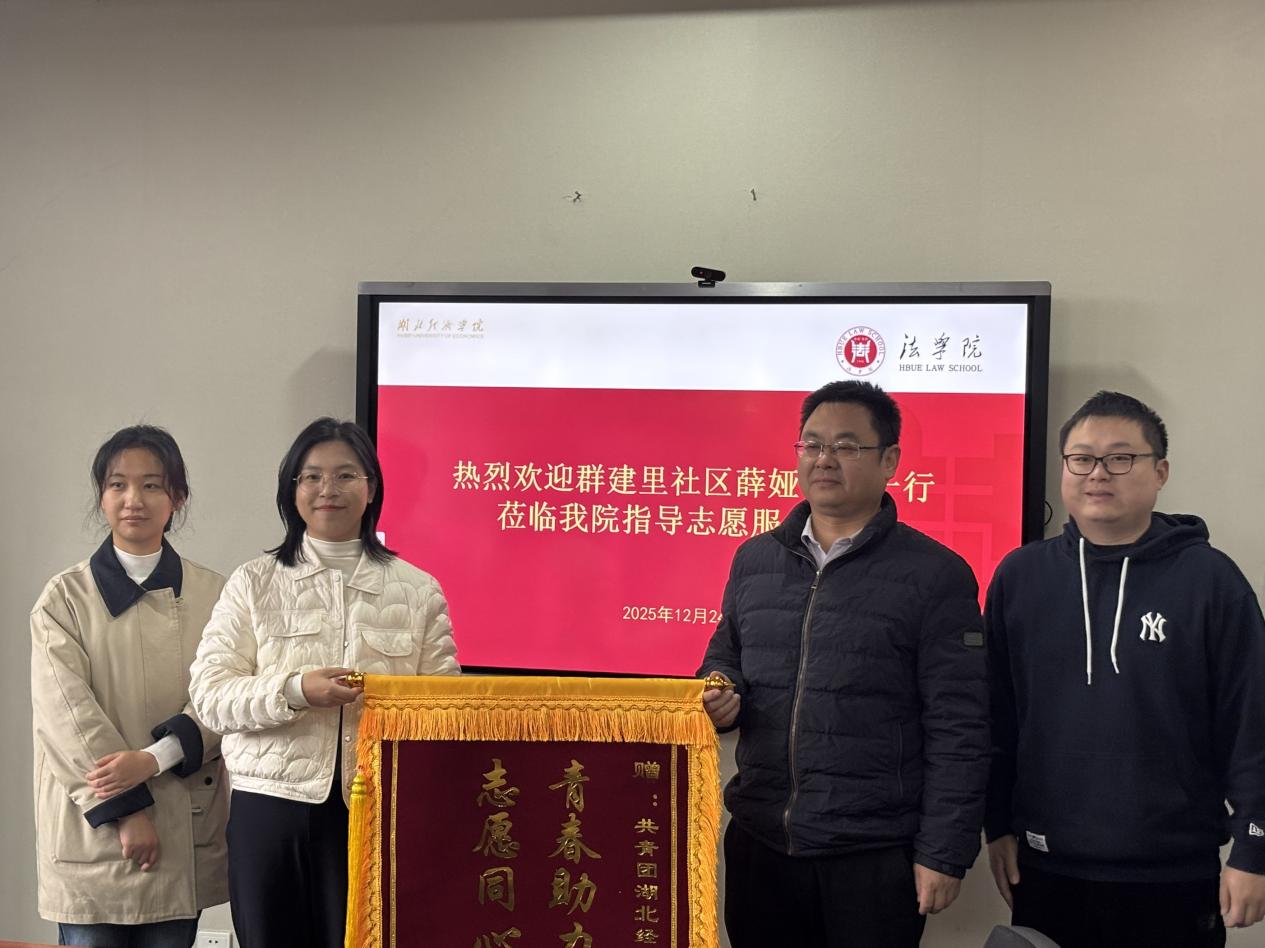 交流中,杨专详细介绍了学院志愿服务队建设、社区服务项目开展及志愿活动成效等情况,重点阐述了师生在法治宣传、社区治理等领域的志愿服务实践。薛娅对金沙官网志愿服务工作的系统性、专业性给予高度评价,肯定了师生志愿者为社区发展作出的积极贡献,并代表社区向学院赠送锦旗,以表感谢。