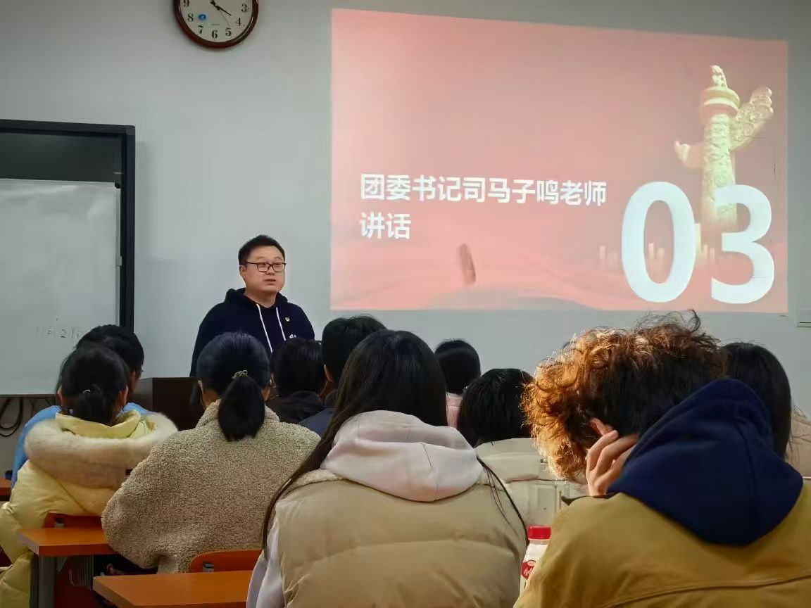 随后,团委书记司马子鸣老师结合青年成长,从思想力、破圈力、探索力三方面与团员交流,强调独立思考与信息检索能力的重要性,并具体指导志愿服务、学科竞赛和社会实践等工作。活动中还开展了生态文明专题学习,引导团员树立绿色发展理念。