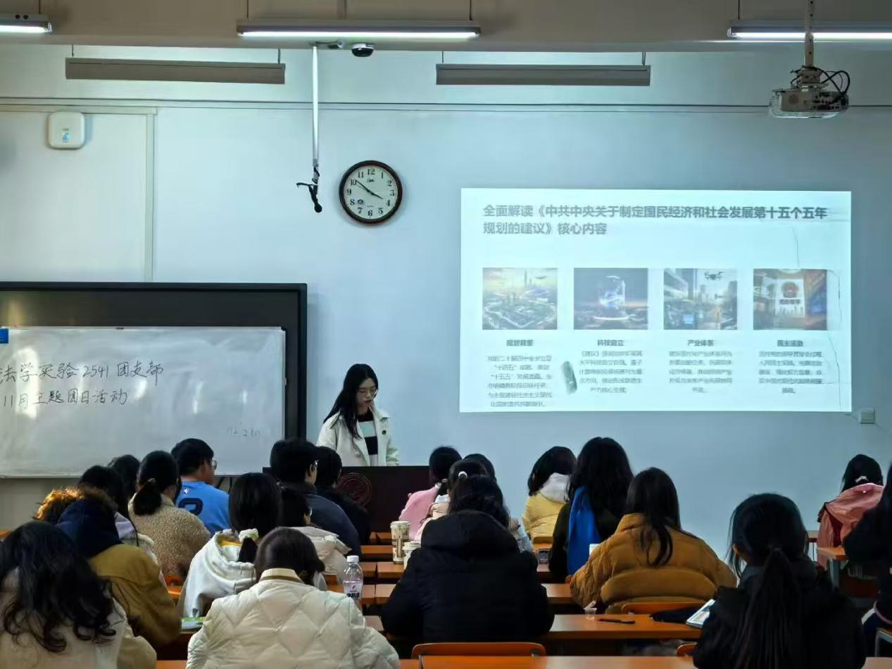 本网讯(通讯员:郭丝雨)近日,法学实验2541团支部组织开展党的二十届四中全会精神专题学习。主讲人郭丝雨围绕全会精神,重点解读了“十五五”规划建议核心内容。