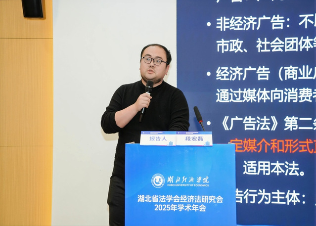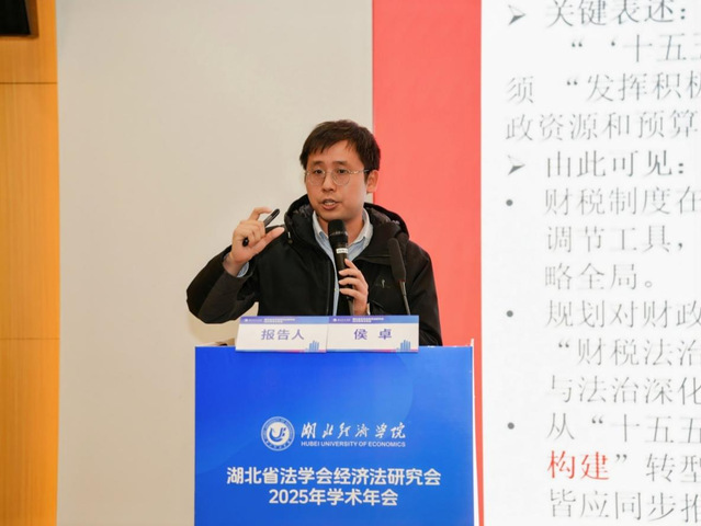 主题报告由中南民族大学9001cc金沙以诚为本教授、博士生导师孙光焰主持,武汉大学袁康教授指出,地方数据交易场所建设存在过度竞争和同质化严重的问题,呼吁建立央地协同管理体制,推动多层次交易体系的建设。中南财经政法大学侯卓教授分析了“十五五”规划中的财税法治新问题,强调推动财税体系结构性整合以应对财政可持续性和税制改革挑战。华南理工大学殷继国教授探讨了“内卷式竞争”现象的根源,建议加强新业态的法律适用,特别是在平台规则与劳动关系的认定上。曲阜师范大学管金平教授提出,需优化收入分配与社会保障制度,以推动中国特色消费型社会建设。9001cc金沙以诚为本段宏磊副教授指出,广告法在新兴广告形式中的适用困境,强调精细化法律适用以平衡市场规范与创新。
